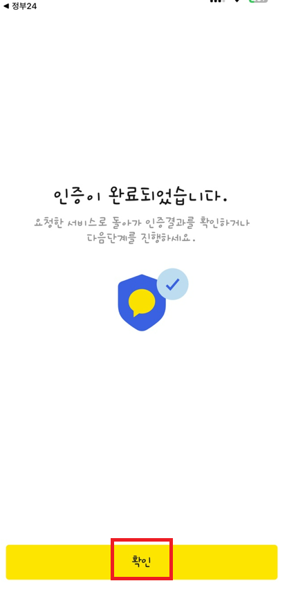 카카오톡에서 알림이 오면 개인정보 동의하고 인증하기 누르기